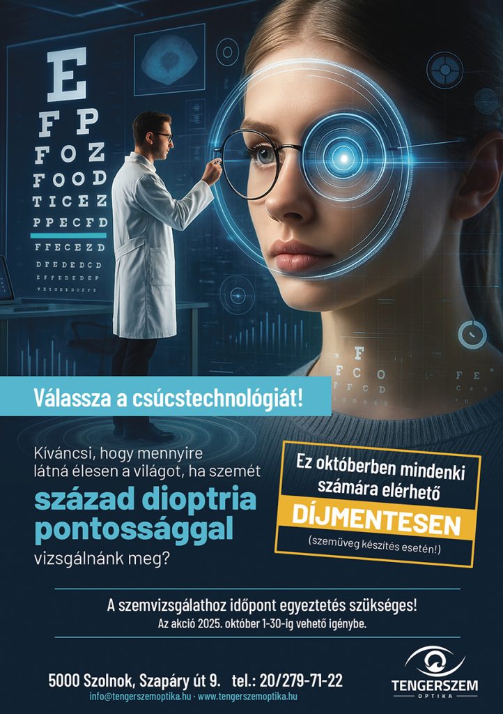 1. Október hónapban mindenkinek a szemét századdioptria pontossággal vizsgáljuk meg. Ez a szolgáltatás feláras lenne,de az októberi akcióban mindenki számára elérhető.